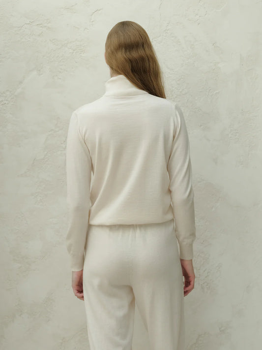Kashmirsekoitteinen korkeakauluksinen neulepusero vetoketjulla