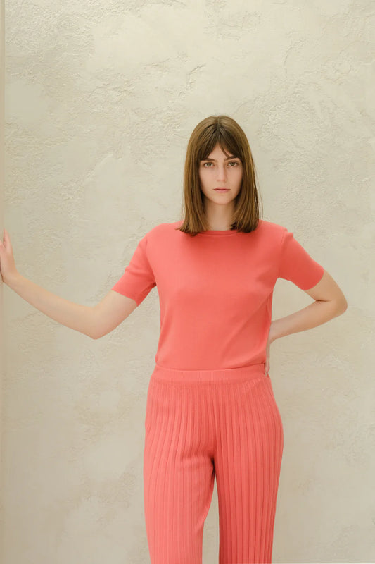 Hieno puuvillainen T-paita, jossa mikroneulontaremmi