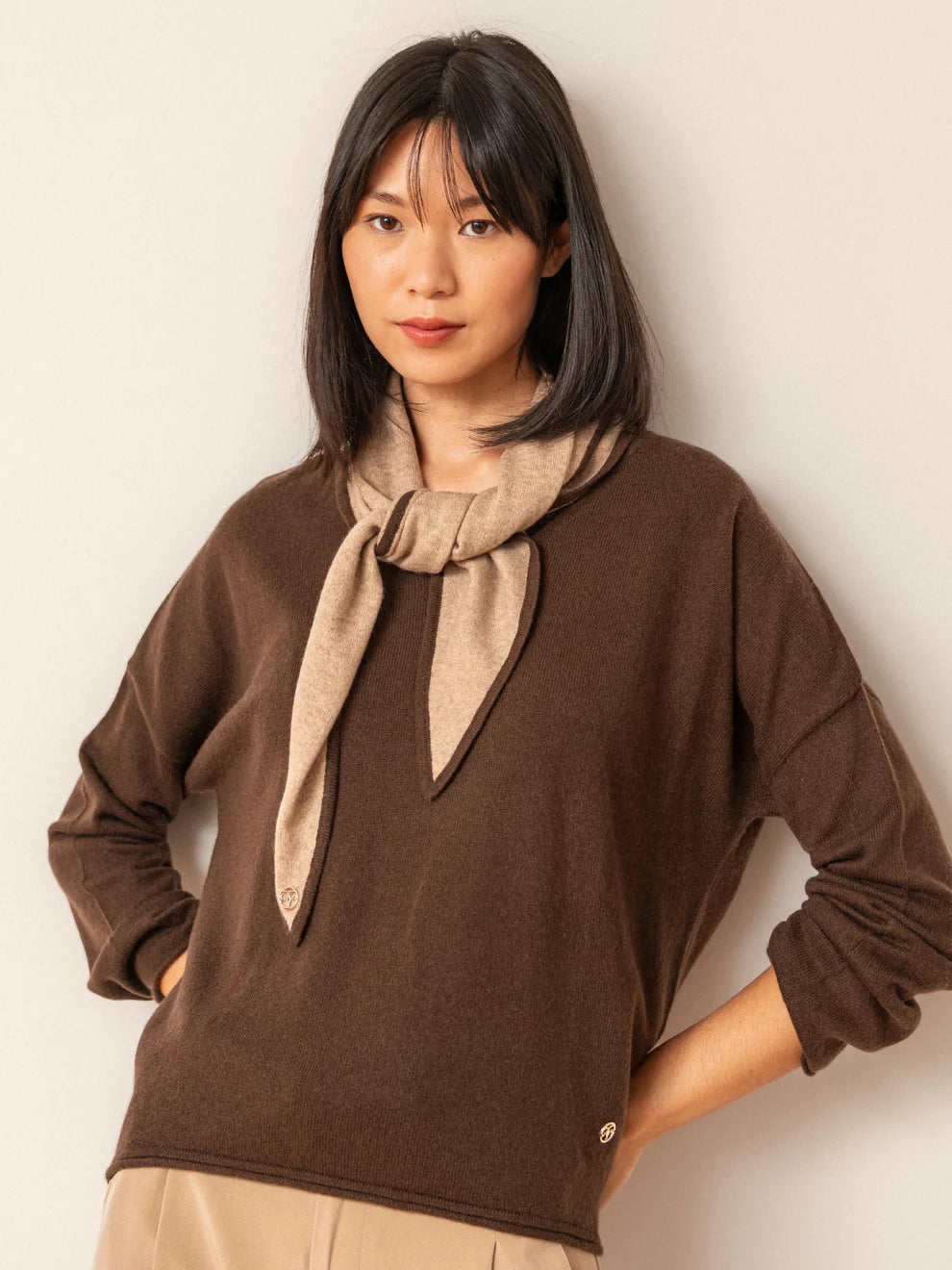 Kevyt, hienostunut ja ikuisesti elegantti. Anaïs-neulepusero on valmistettu puhtaasta, ohuesta (12gg) kashmirista, mikä antaa sille pehmeän ja miellyttävän tekstuurin tinkimättä lämmöstä.
