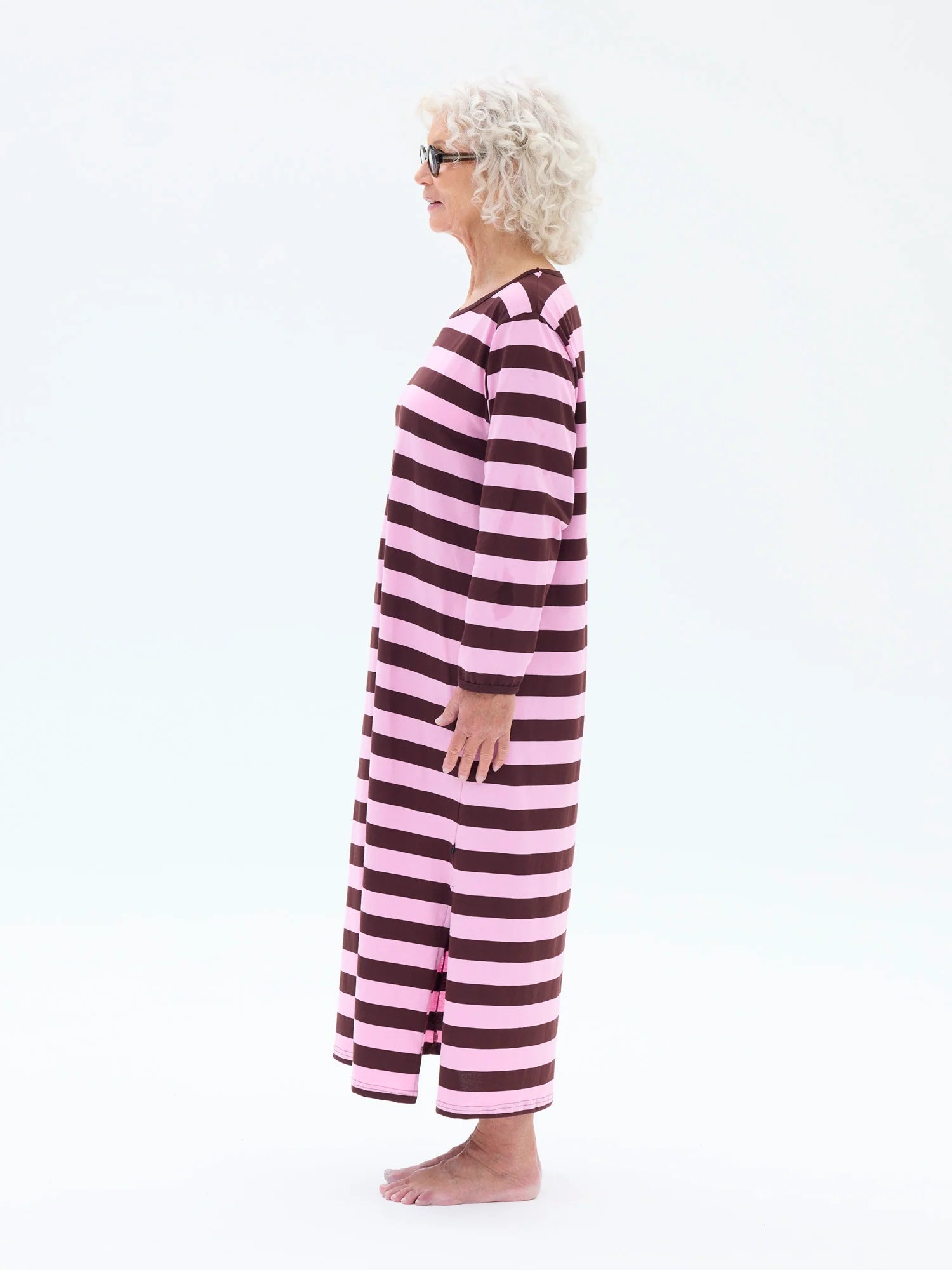 Felia yöpaita pirteässä pinkki-viininpunaisessa raidassa. Yöpaidan malli on melkein kuin suositussa Fanni-yöpaidassamme, mutta Felia levenee hieman enemmän alaspäin ja näin lantiolle jää mukavasti väljyyttä. Felia on pitkähihainen pitkä yöpaita, jossa on pyöreä pääntie. Helmassa sivulla oleva halkio tuo käyttömukavuutta. Yöpaidan pituus on noin 128 cm koossa M. Paituli on valmistettu laadukkaasta 100% puuvillasta ja materiaalinsa ansiosta paituli tuntuu lämpimältä viileinä iltoina, mutta mukavan keveältä kuumina kesäöinä. Trikoo-neulosta, joka on iholla pehmeää ja hengittävää materiaalia. Valmistettu Portugalissa.