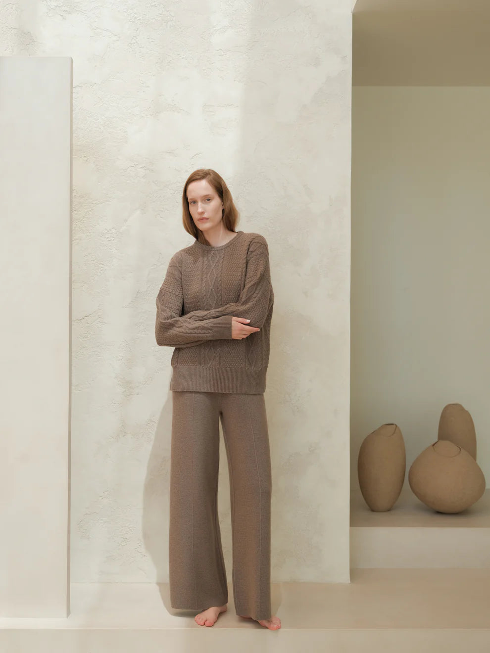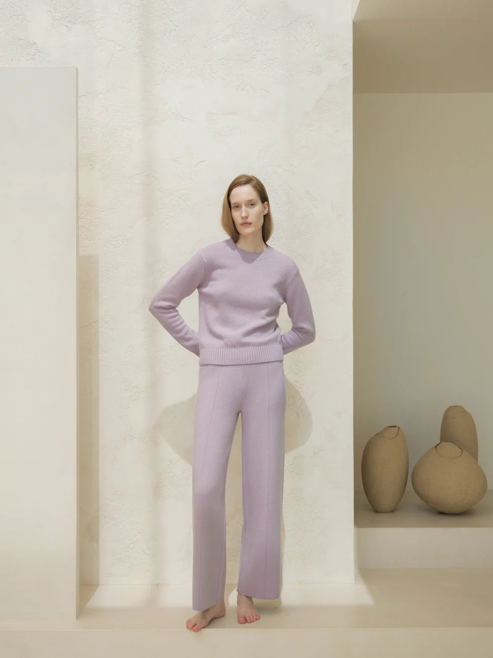 Kashmir-sekoitteiset yksiväriset housut