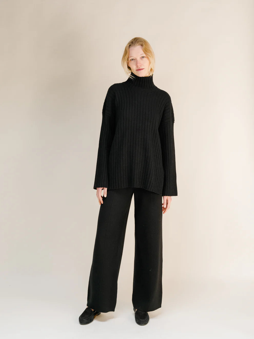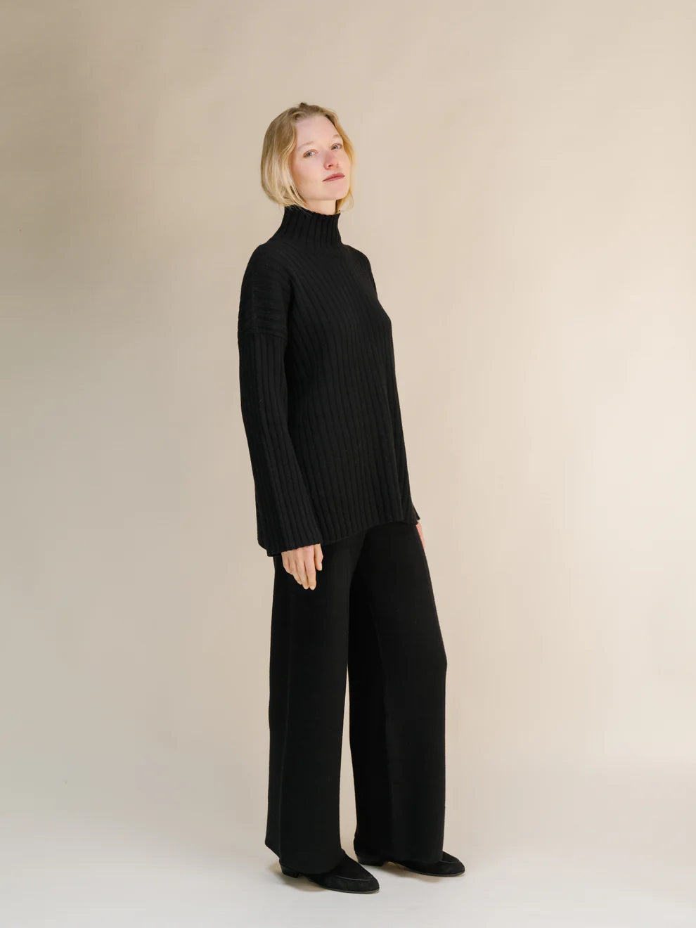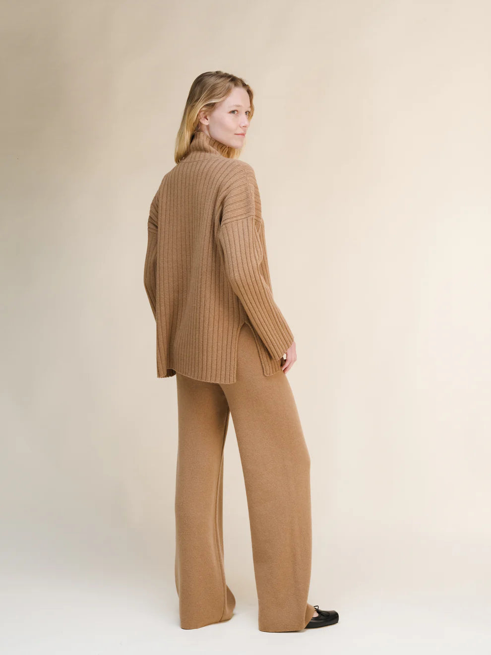 Leveälahkeisissa housuissa on joustava vyötärönauha mukavuuden ja mukavuuden takaamiseksi. Ajatonta italialaista eleganssia. Milano-tikkaustekniikalla neulotut housut tarjoavat rakennetta.