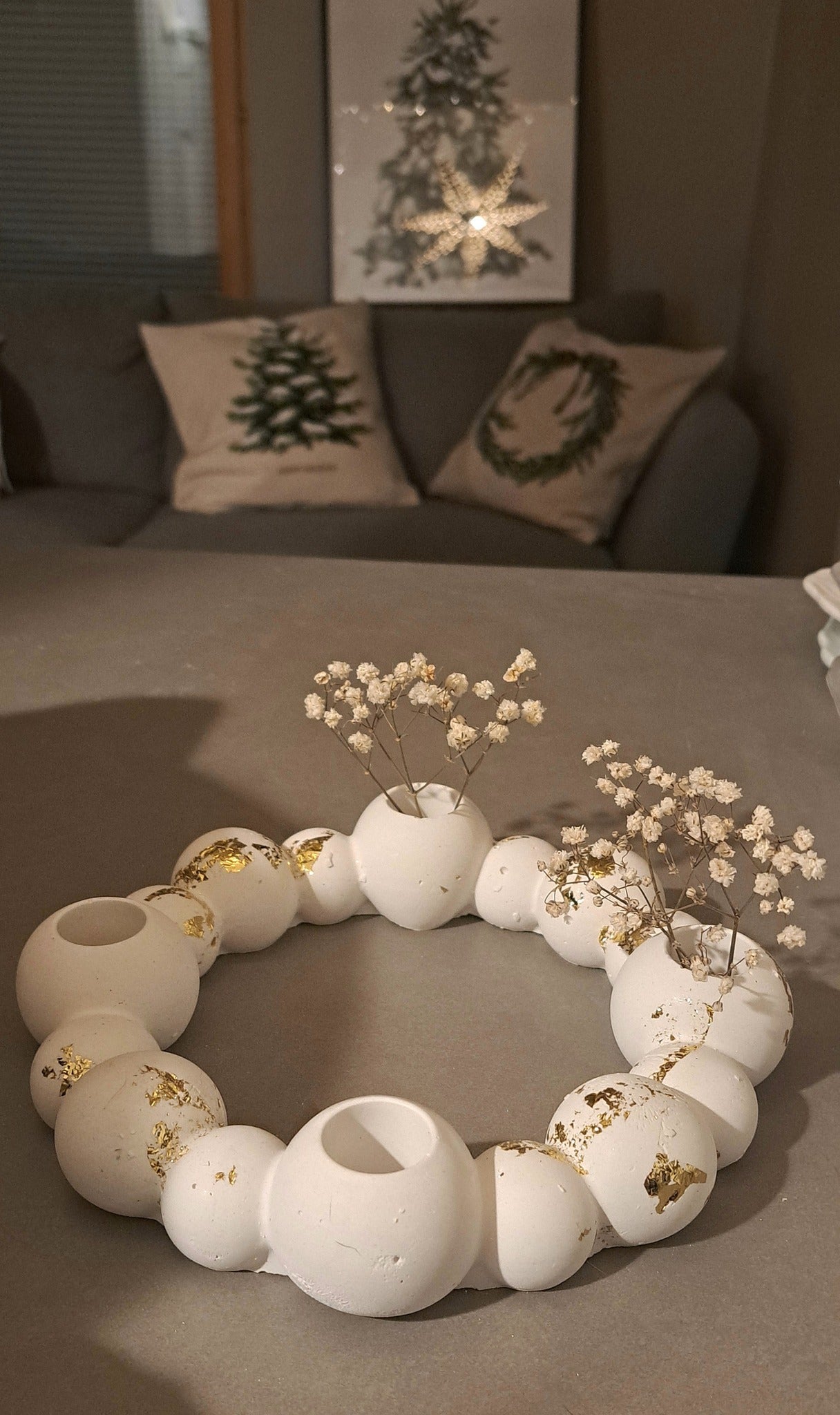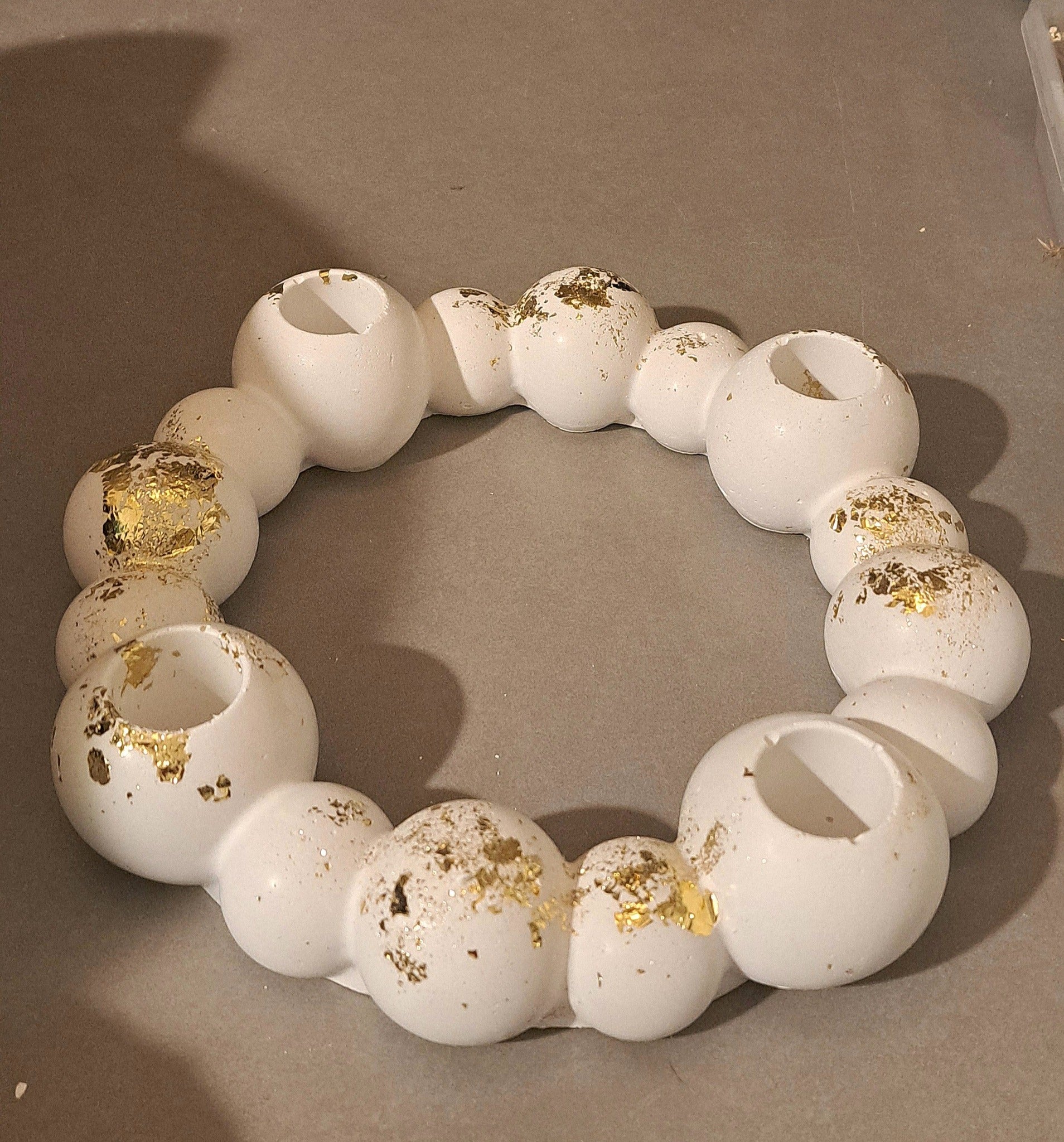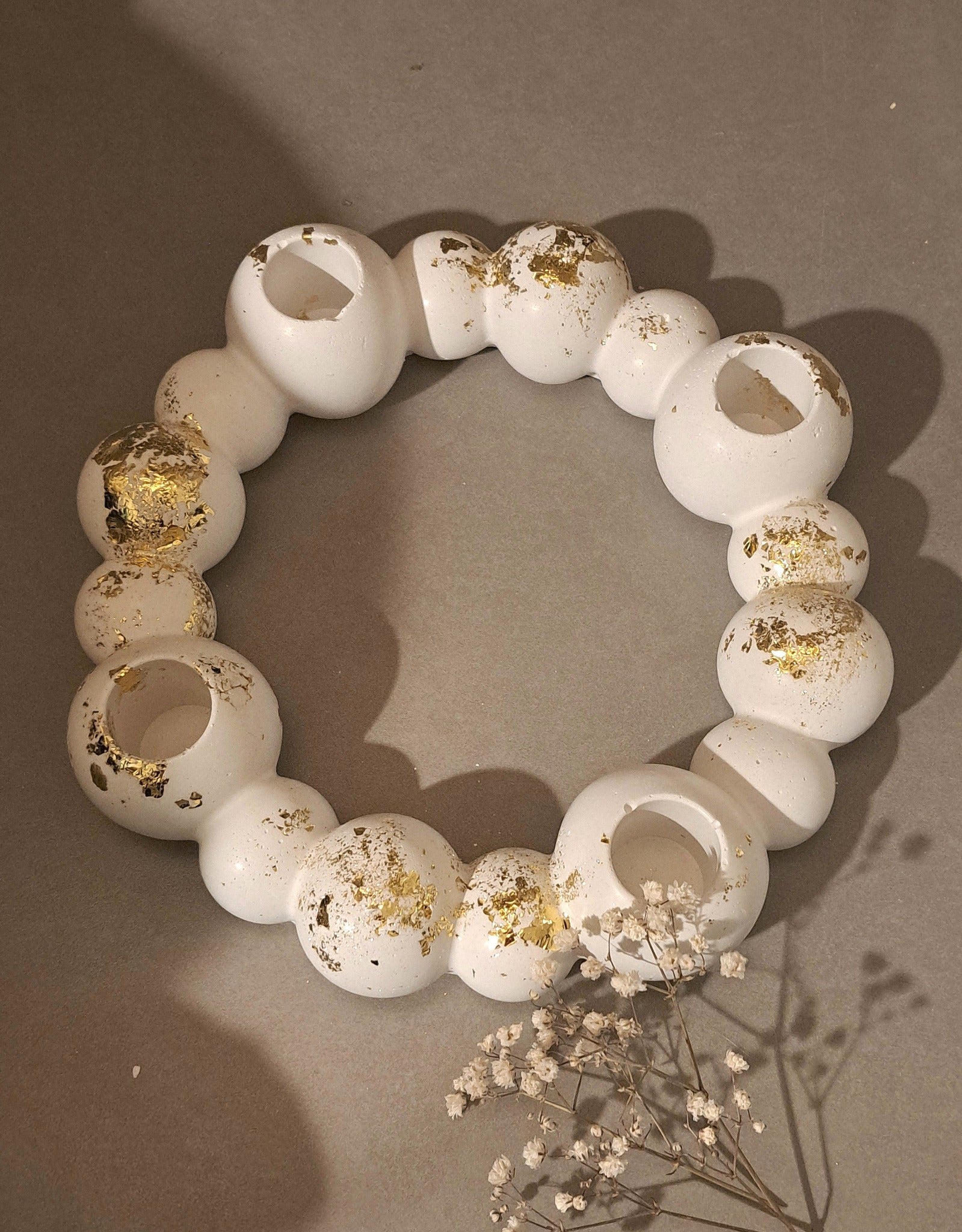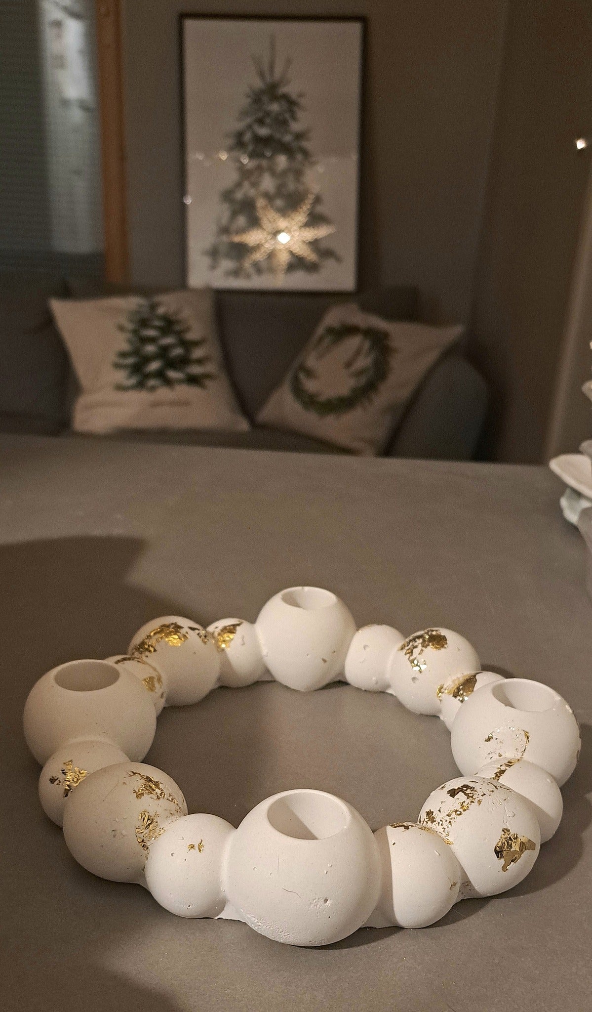 Neljän kynttilän kynttelikkö. Valmistettu ekohartsilla, mikä on ympäristöystävällisempi materiaali. Tämä kestää kuumaa kuin myös kylmää.