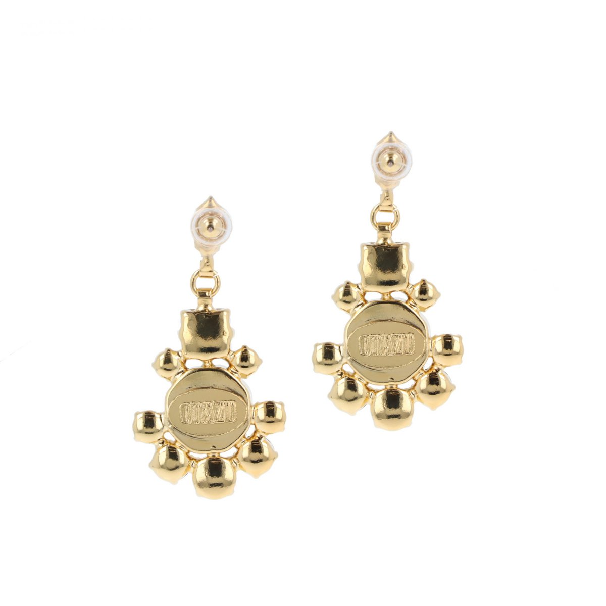 Nämä kultaiset korvakorut on koristeltu upeilla Swarovski-kristalleilla eri vihreän ja sinisen sävyissä, ja ne on viimeistelty 24 karaatin kultauksella.