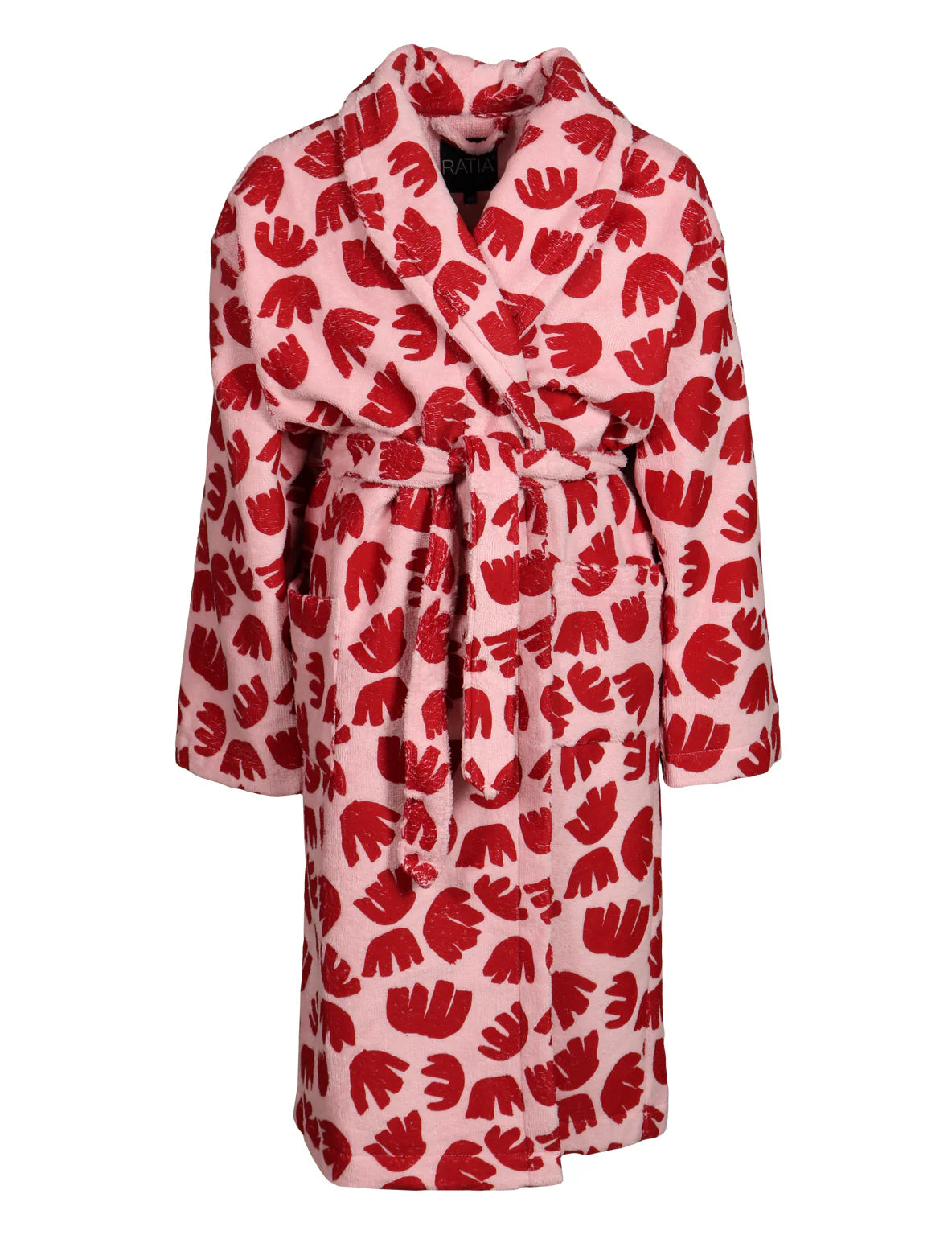 Lasten ihana jaquard velourkylpytakki. Takissa on shaalikaulus, taskut ja vyö. Takin pituus n. 70 cm koossa 100 cm.