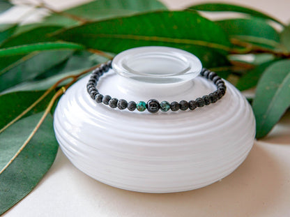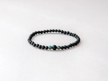 Miesten 4 mm Minimalism Lava Rannekoru onyxilla ja turkoosilla