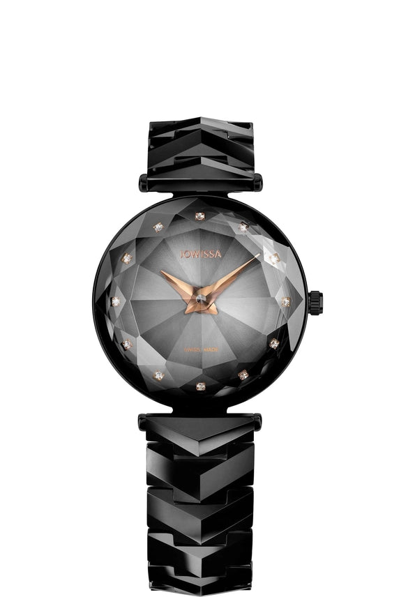 Hemmottele itseäsi elegantilla kellolla - 30 mm:n naisten pukukellolla, jossa on upea, fasettihiottu safiirilasi naarmuuntumisen kestävyyden takaamiseksi. Ihaile sen harmaata, kulunutta kellotaulua ja täydennä ilme tyylikkäällä mustalla keraamisella rannekkeella ja mustalla ruostumattomasta teräksestä valmistetulla kuorella. Ajattoman muodikas!