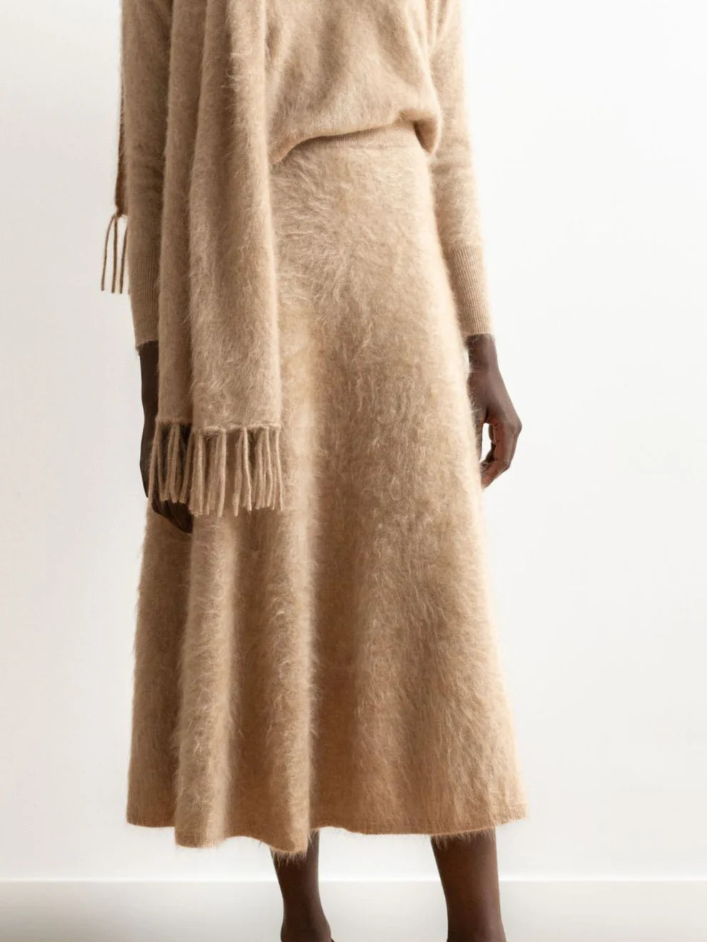 Kaunis A-linjainen kashmirhame. Valmistettu puhtaasta kashmirista, jossa on harjattu efekti, joka antaa sille samettisen ja pörröisen ilmeen.
