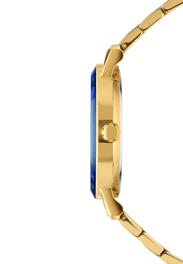Sinisellä kellotaululla ja kullanvärisillä yksityiskohdilla varustettu Magno Moon yhdistää eleganssin ja luonteen. Kultaisen ruostumattomasta teräksestä valmistetun kellon halkaisija on 40 mm, ja se on erityisen mukava käyttää litteän kotelonsa ansiosta. Kuunvaihenäyttö päivämääräikkunalla ei ole ainoastaan käytännöllinen, vaan myös todellinen katseenvangitsija. Sveitsiläinen ja 5 ATM:n vesitiivis – kello, joka tekee vaikutuksen.