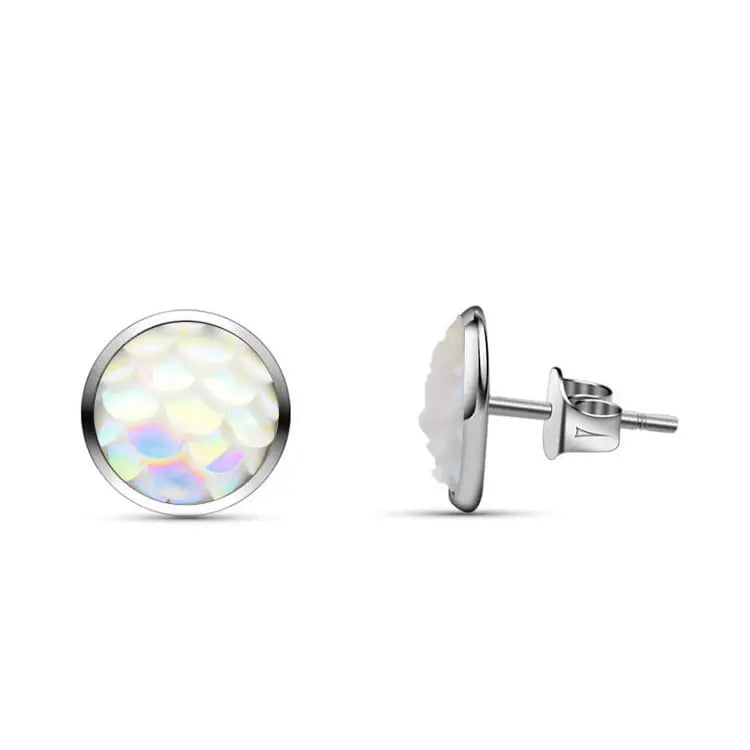 Satumaisen viehättävä suomupintainen nappikorvakoru. Korun keskellä olevat vihreän sävyissä hohtavat suomut ovat kuin myrskyävän meren rantaan lyövät aallot. Suomut valmistettu synteettisestä hartsista. Korun pinta on sileä ja kerroksellinen, elävän tuntuinen. Jokaisen tytön unelmakorvis. Värivalikoimasta löytyy vaihtoehtoja joka tytölle, joka tilanteeseen. Korurasiaa täydentämään kannattaakin hankkia vaikka joka väriä. Korun halkaisija 8 mm. Nappilukitus.