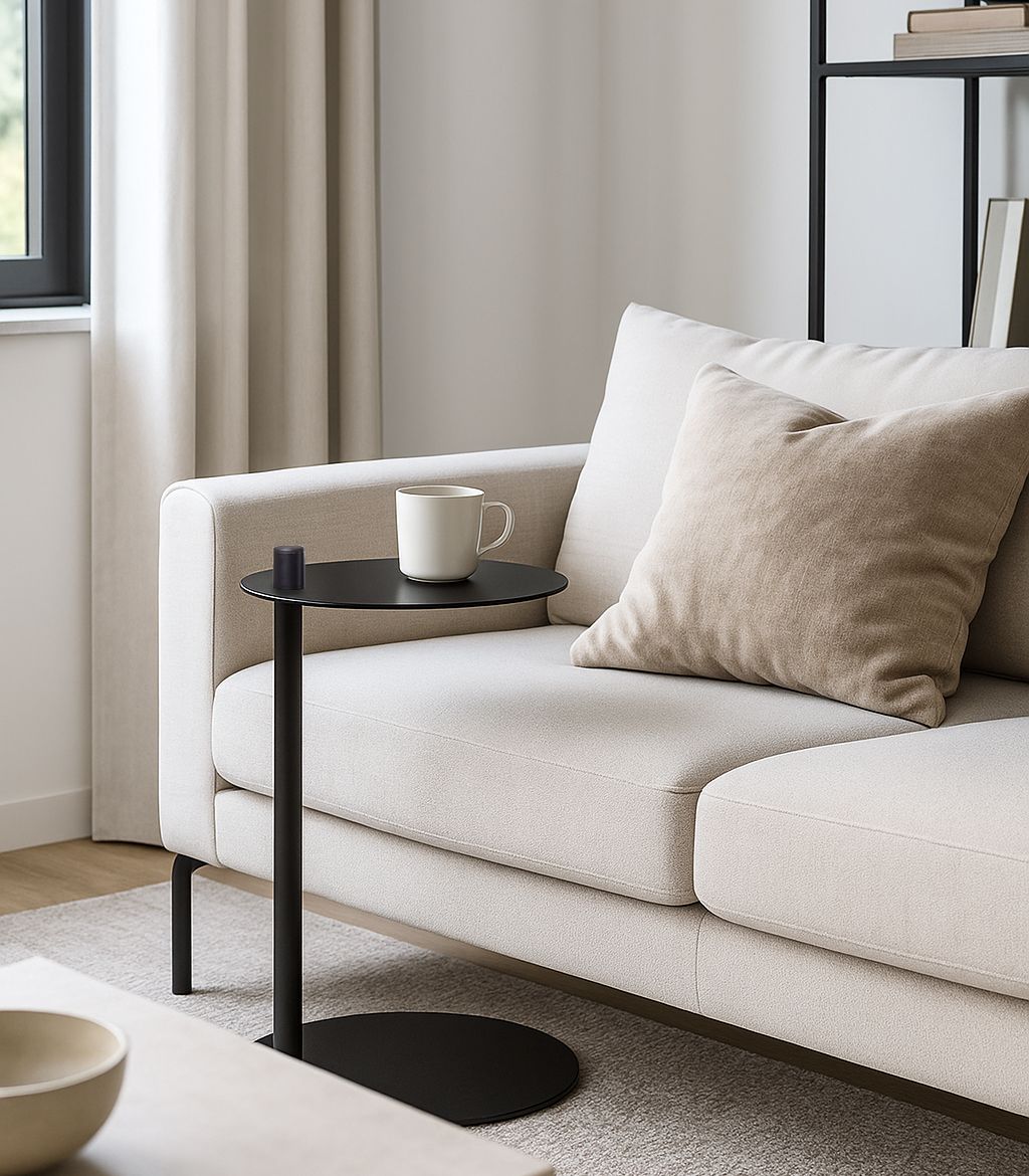 Metallinen sivupöytä, kauniin yksinkertainen ja minimalistisen muotoilun vuoksi se sopii tilaan kuin tilaan.