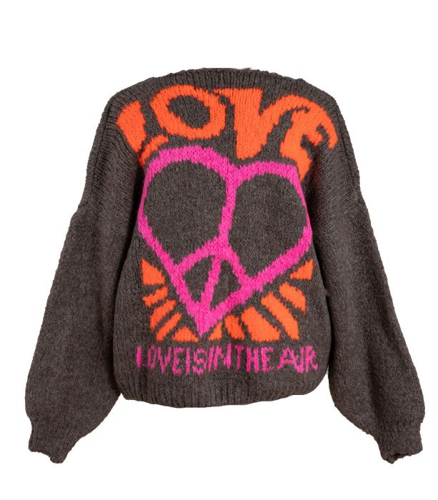 Neule, jonka selässä love-teksti (love, love is in the air).
