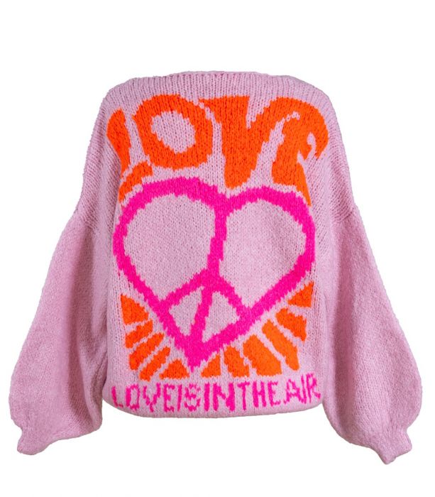 Neule, jonka selässä love-teksti (love, love is in the air).