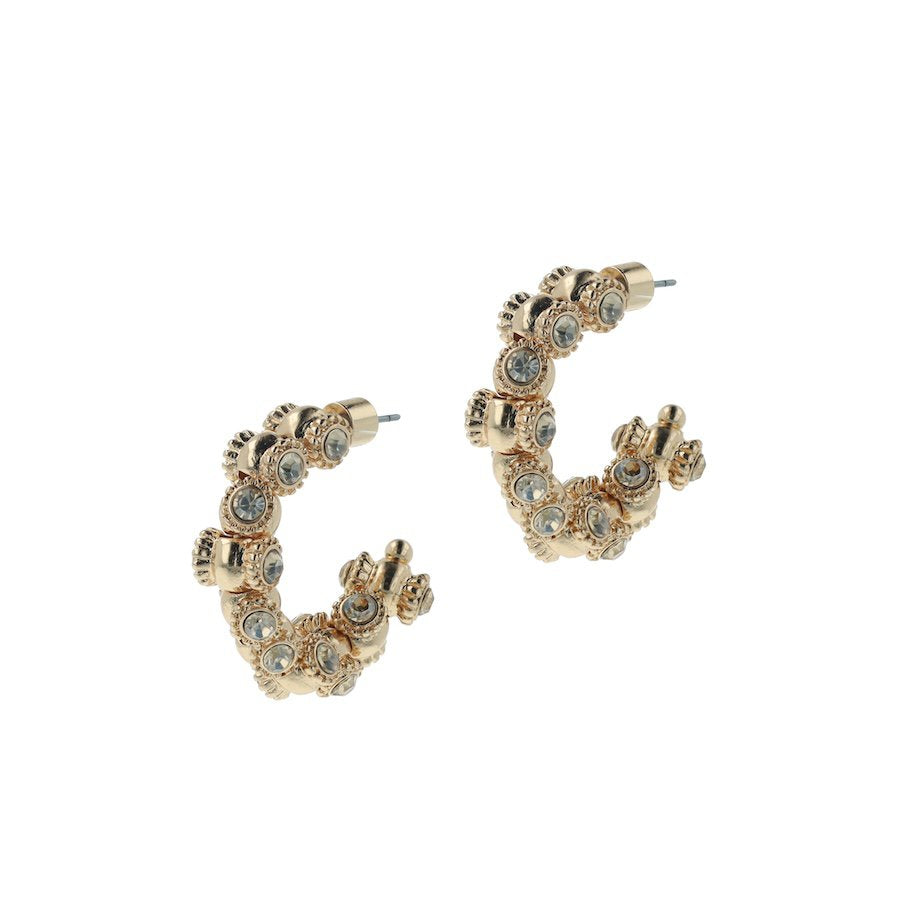 Tapaa Vintage Barrel -perheen uusin tulokas... nämä kultaiset renkaat on valmistettu pienistä tynnyreistä, jotka on koristeltu kimaltelevilla Swarovskin kultaisilla kristalleilla. Viimeistelty 14 karaatin kullalla ja helppokäyttöiset kevyen muotoilunsa ansiosta. Täydennä tyylisi yhteensopivalla kaulakorulla tai rannekkeella.