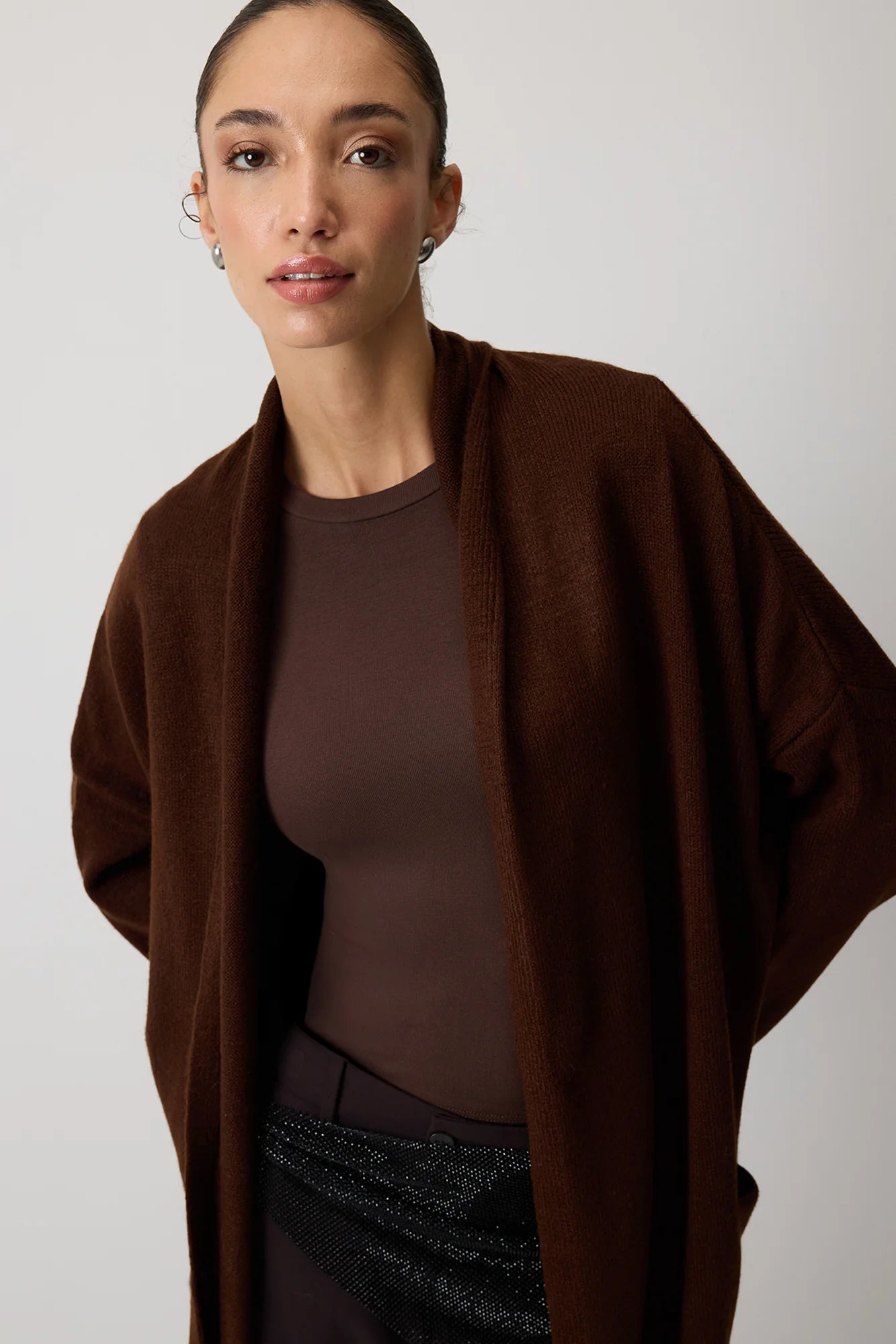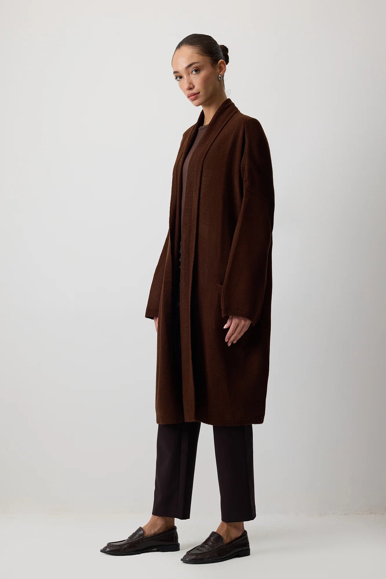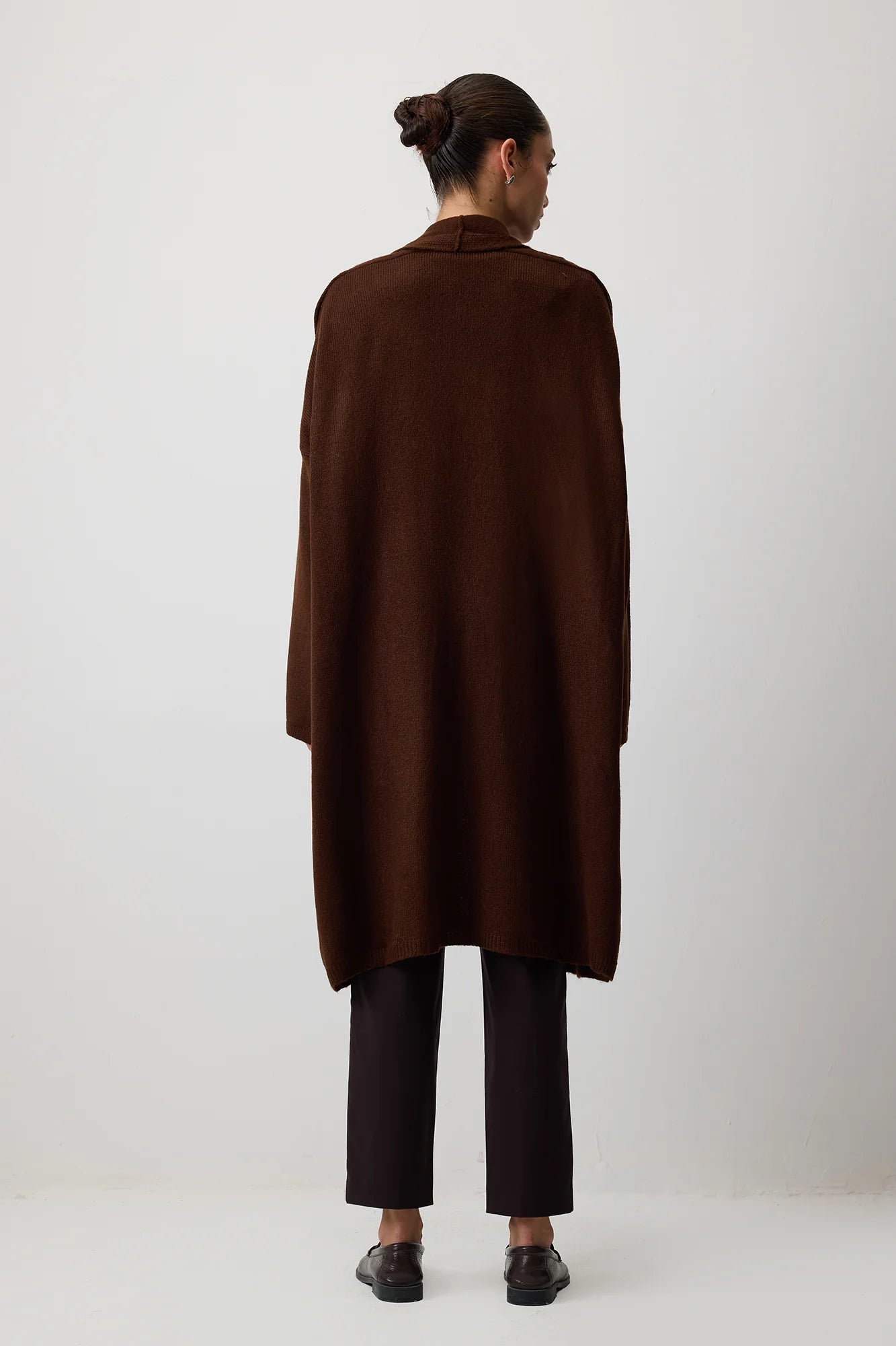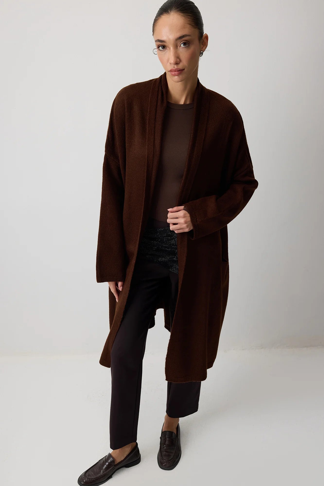 Ajaton neuletakki taskuilla. One size koko sopii monelle. Miellyttävän pitkä malli pitää lämpimänä.