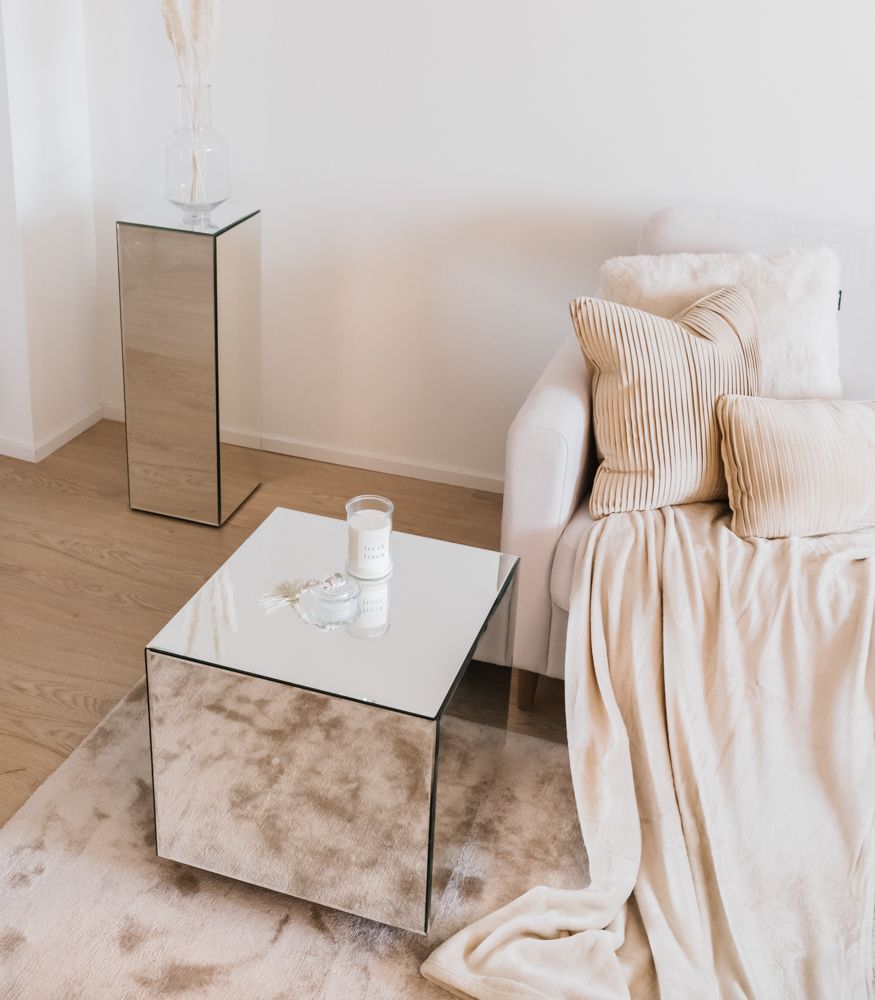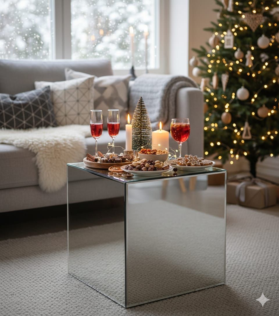 Pöytä on valmistettu korkealaatuisesta, kestävästä peilistä, joka on huolellisesti käsitelty naarmuuntumisen estämiseksi.