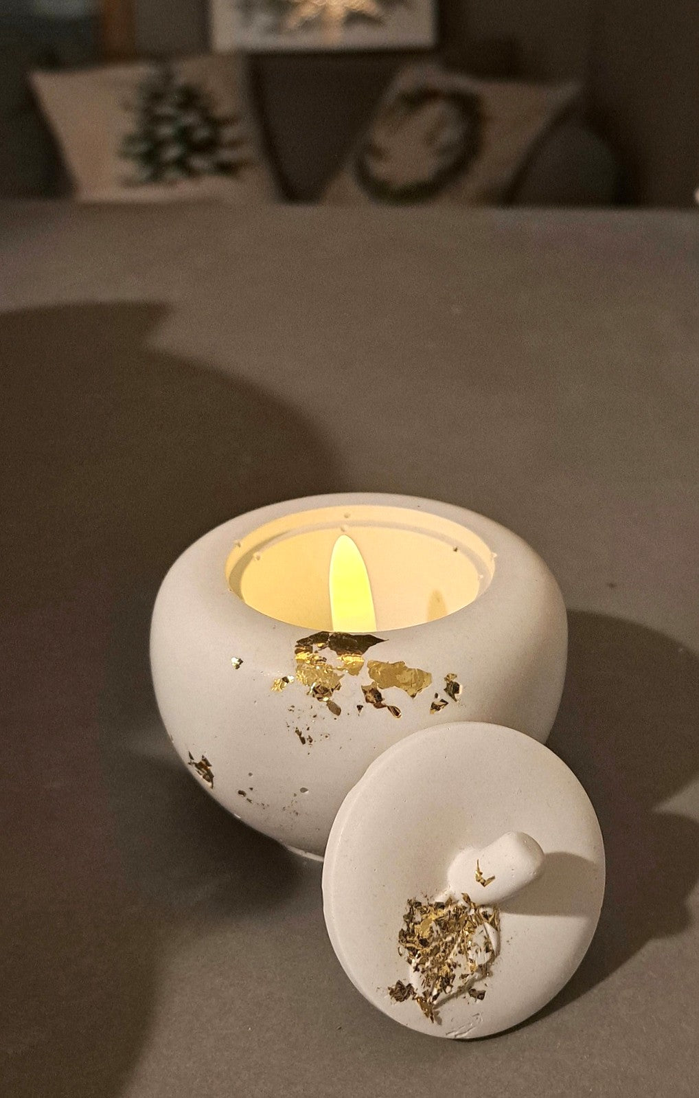 Pieni omena-rasia, jossa voi säilyttää koruja, tuikkukynttilää tai lisätä Candledust kynttiläjauhetta ja polttaa oikeaa kynttilää. Sillä tämä materiaali kestää kuumuutta.