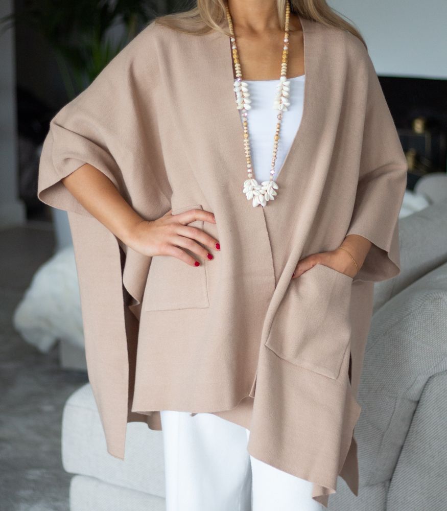 Tuo tyyliä ja mukavuutta arkeesi tällä monikäyttöisellä neuleponcholla. Sileä, tyylikäs neulos laskeutuu kauniisti ja sopii täydellisesti niin rennon kuin huolitellunkin asun pariksi. Edessä käytännölliset taskut ja sivuilla koristenapit, jotka muotoilevat ponchosta hihat. Helppo yhdistää farkkuihin, mekkoon tai toimistotyyliin. Poncho on arjen luottovaate ympäri vuoden, mutta sopii täydellisesti myös juhliin.