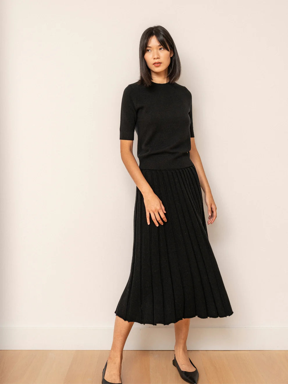 Ylellinen, hieno ja lyhythihainen neulepusero puhtaasta kashmirista