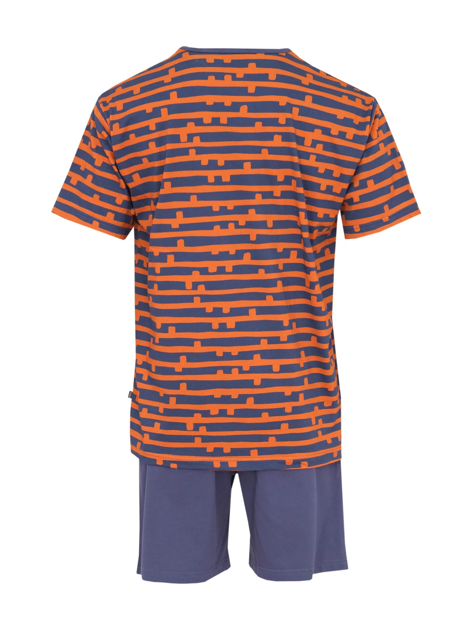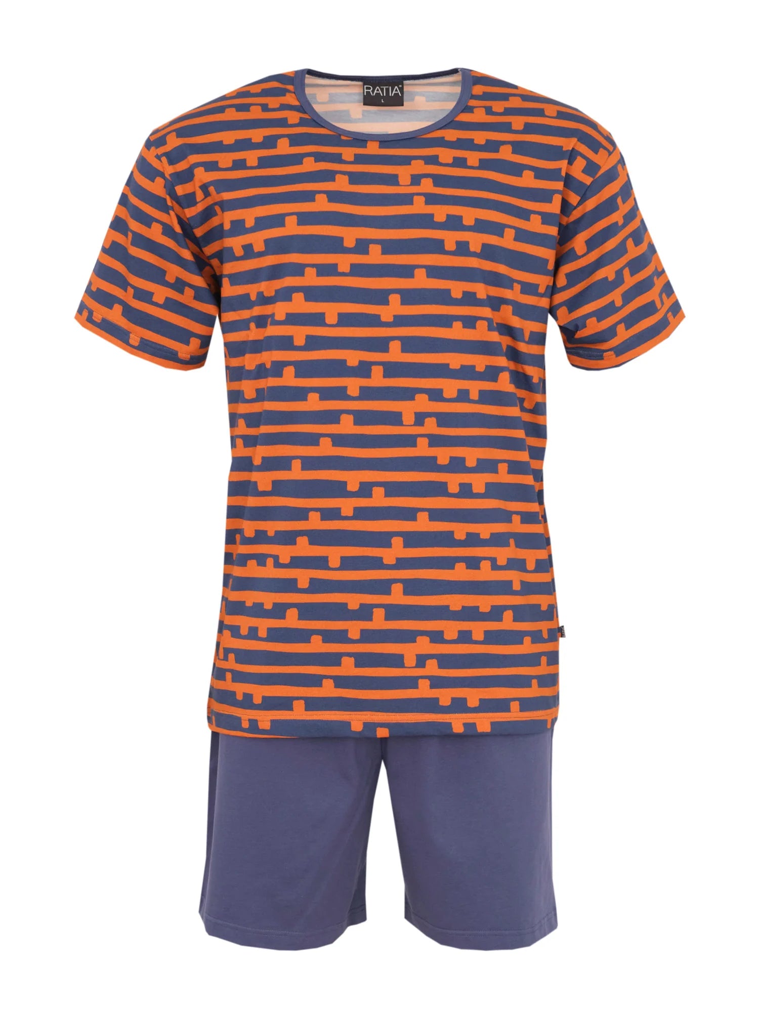 Mukava ja kevyt miesten shortsipyjama, joka on valmistettu laadukkaasta 100 % puuvillasta. Materiaali on hengittävä, miellyttävän pehmeä ja joustava, mikä tekee siitä täydellisen valinnan niin yöunille kuin kotona rentoutumiseen. Pyjamassa on lyhythihainen t-paita kupari-sinisellä Paju-kuosilla ja yhteensopivat yksiväriset siniset shortsit. Pyöreä pääntie. Klassinen ja ajaton malli istuu rennosti, mutta on samalla huoliteltu.