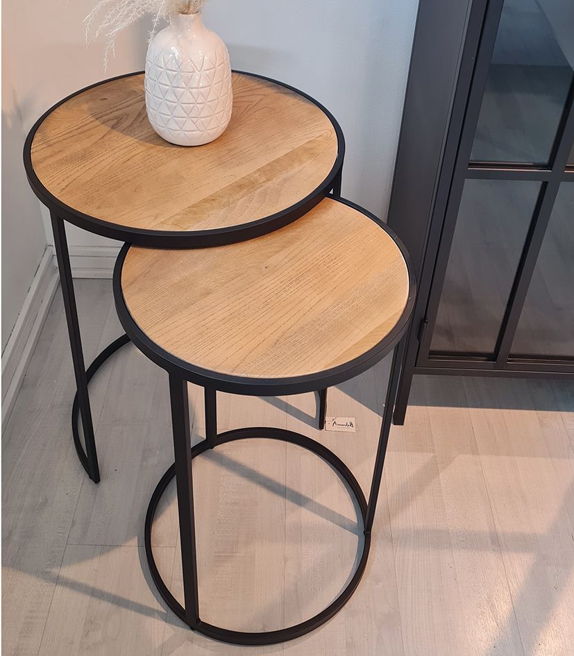 Sivupöytä setti, rautaa ja tammea, 50x50x64cm