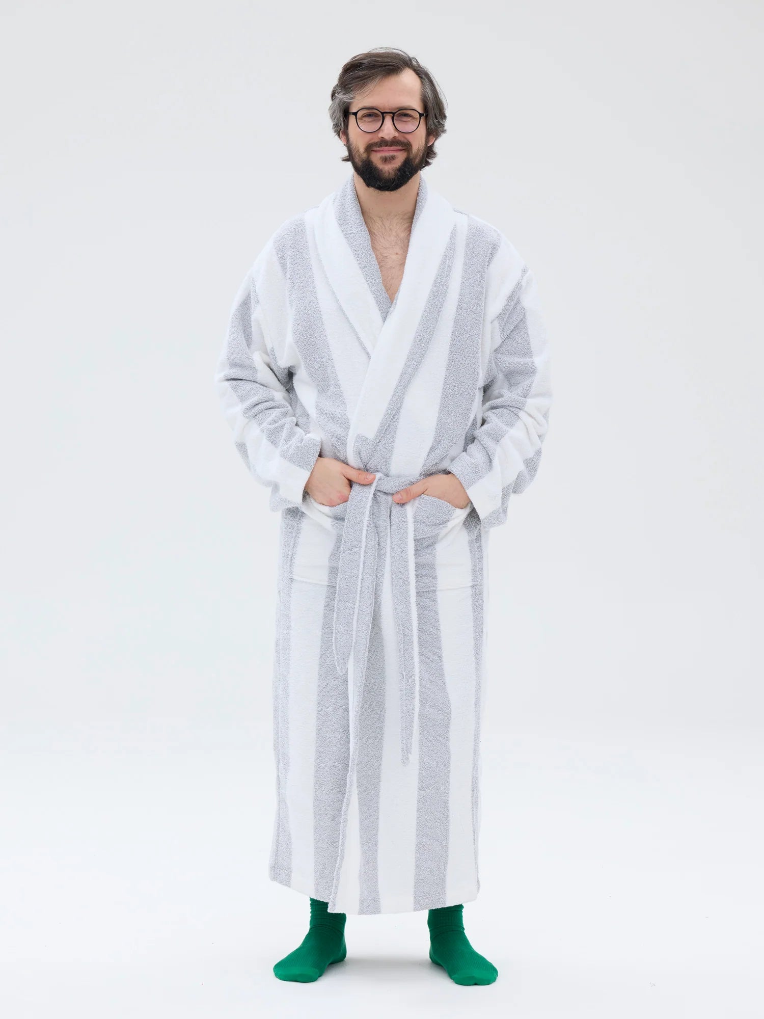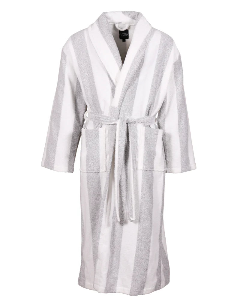 Unisex Kylpytakki Pippuriraita, Harmaa/Valkoinen