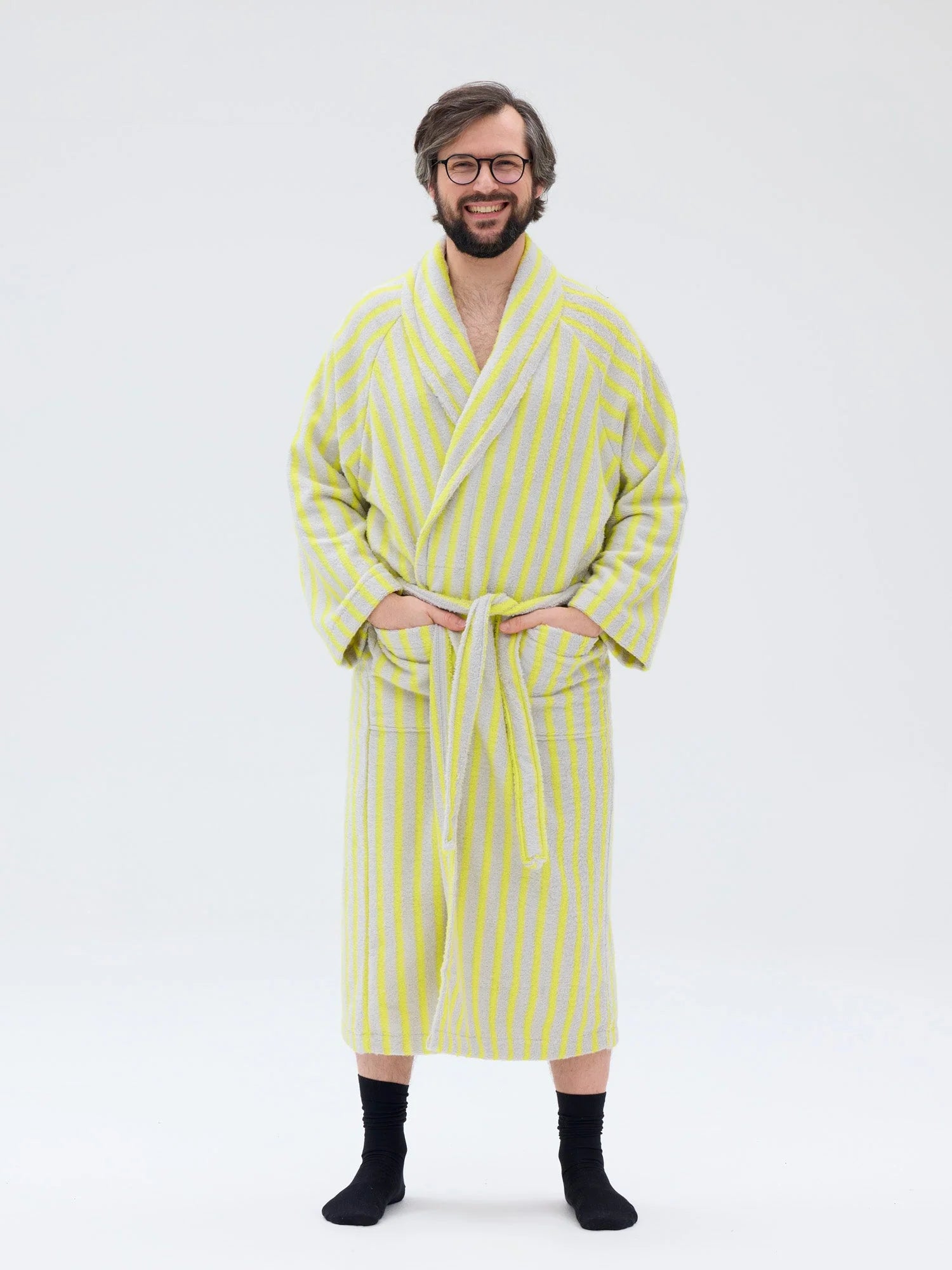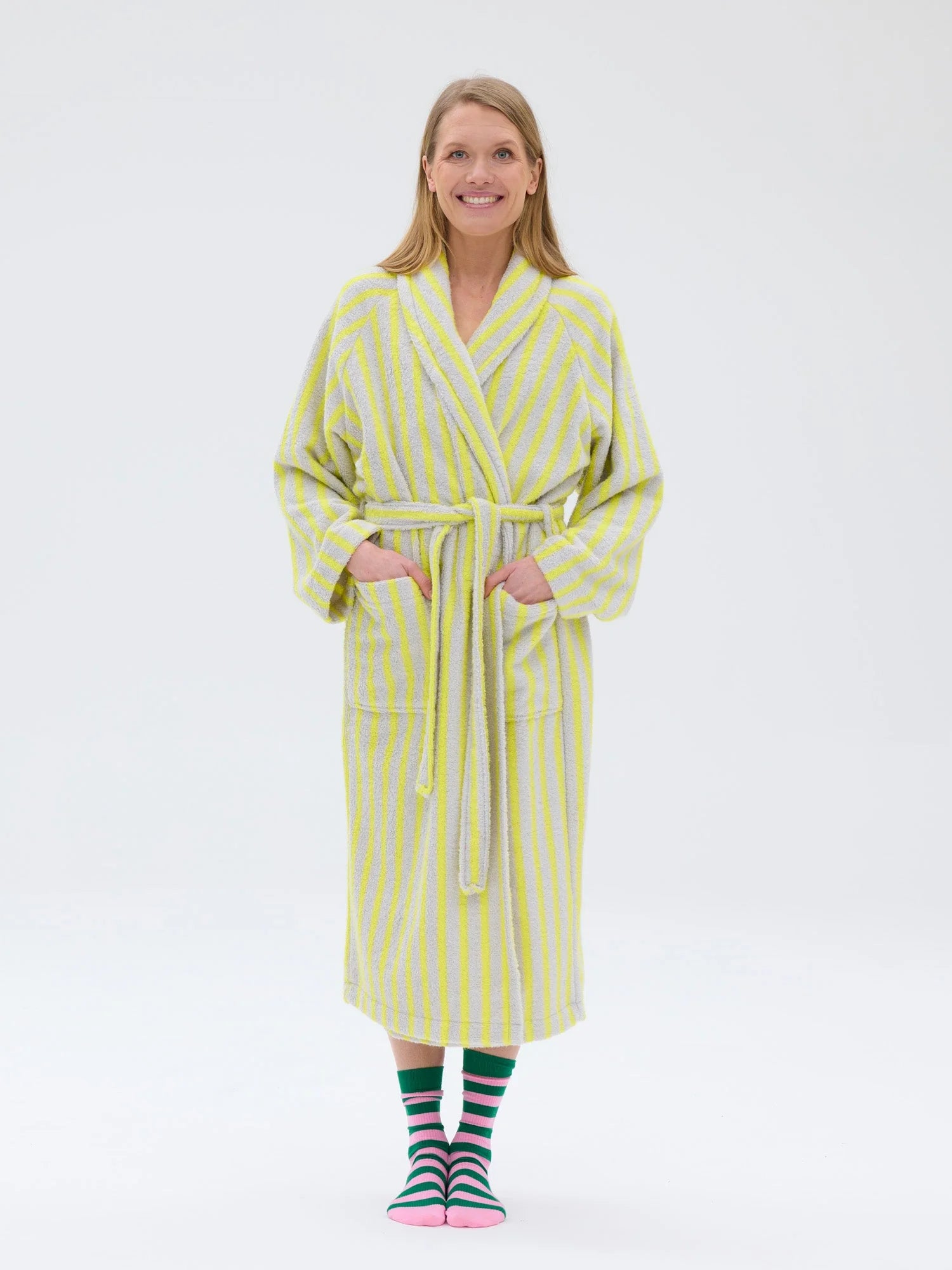 Unisex Kylpytakki Raita, Keltainen/Harmaa