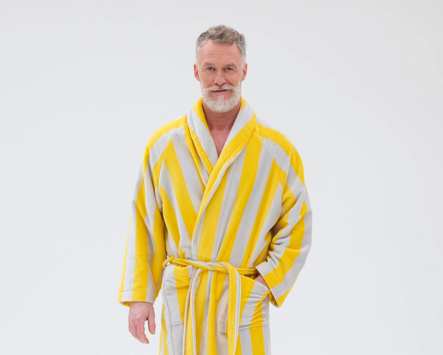 Unisex Kylpytakki Raita, Keltainen/Harmaa