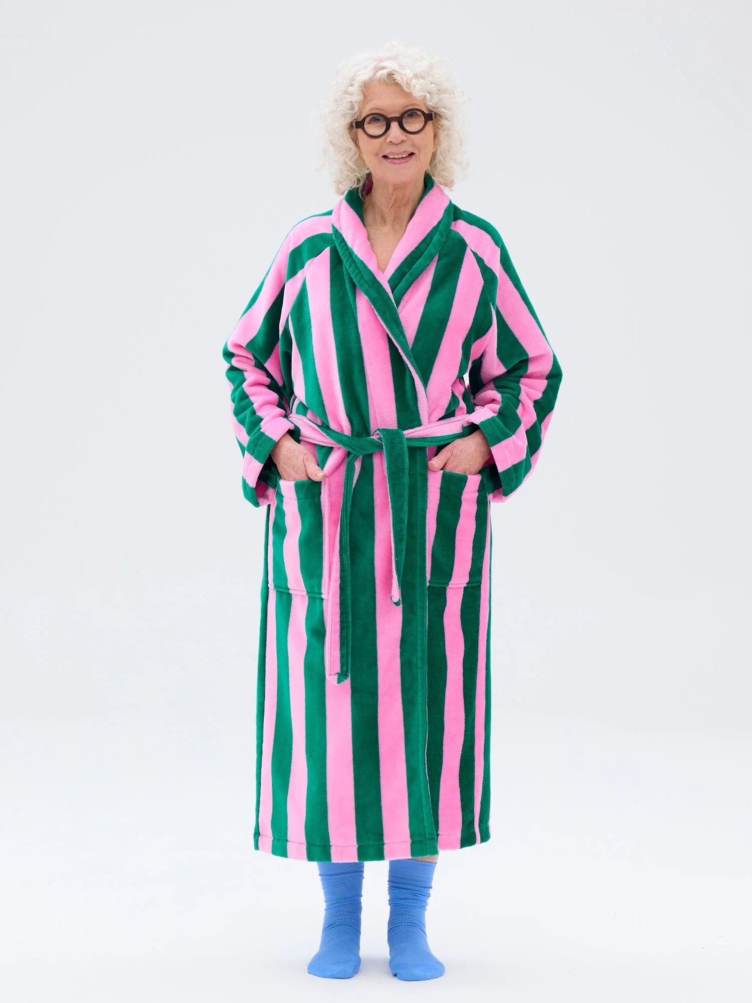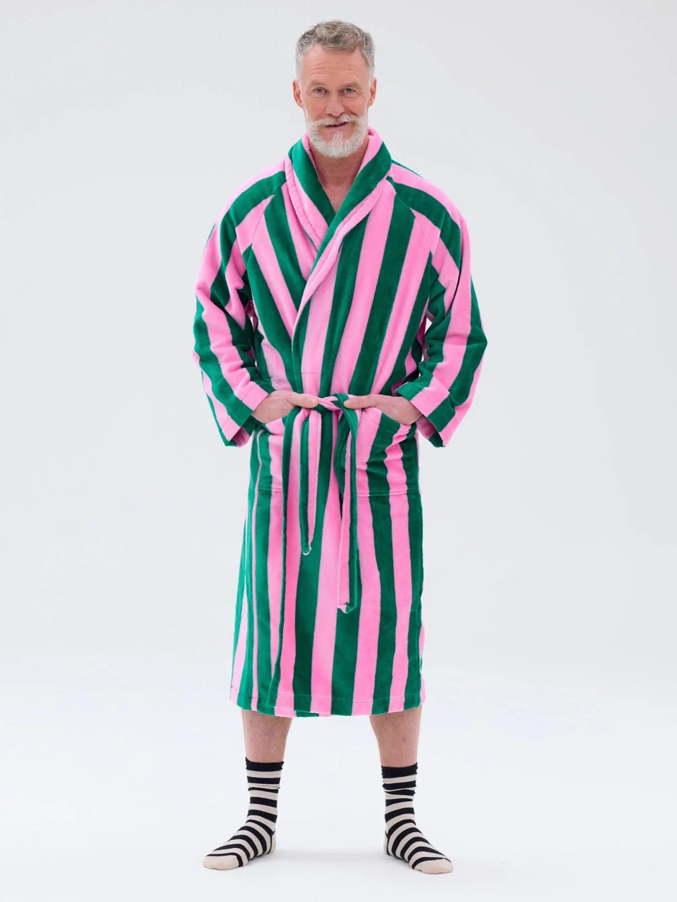 Voit luoda itsellesi palan arjen luksusta pukemalla kylvyn jälkeen päällesi raikkaan värisen unisex velour-kylpytakin. Raidan leveys 50 mm. Kylpytakissa on raglanhihat, taskut ja vyö. Jos haluat ostaa takin naiselle, valitse yksi koko pienempi kuin normaalisti. Valmistettu Portugalissa.