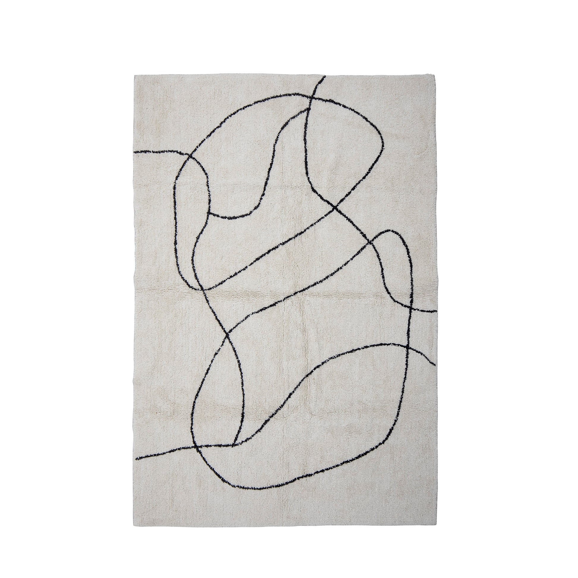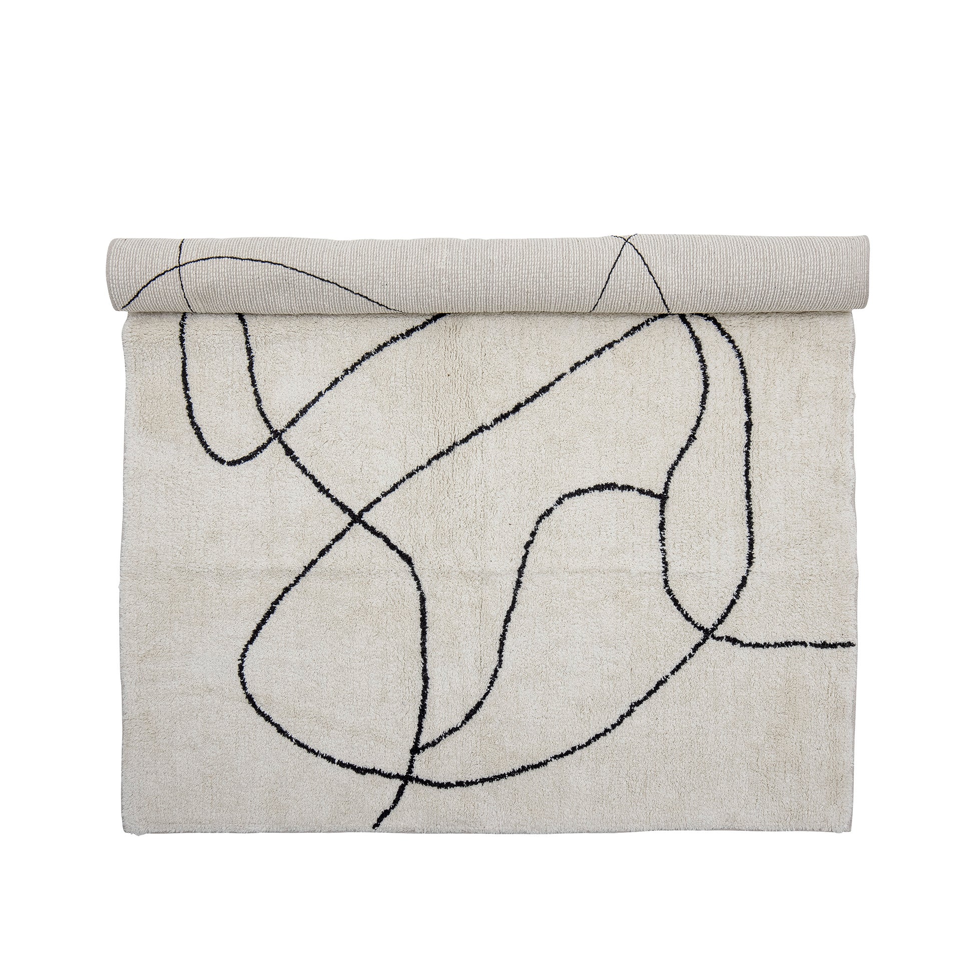Bloomingvillen Viga-matto on valmistettu puuvillasta ja siinä on kaunis tuftattu kuvio valkoisena ja mustana. Matto luo lämpöä ja kodikkuutta pohjoismaiseen kotiin.
