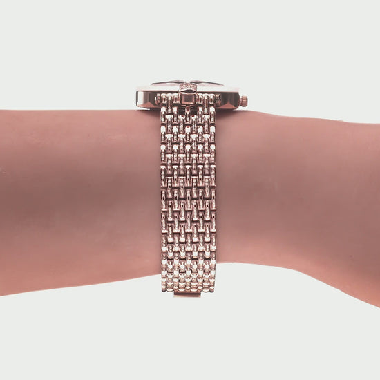 Naisten ruusukultaiset kellot ovat ikuisesti tyylikkäitä, erityisesti tämä sveitsiläinen rannekello, jossa on kaunis valkoinen helmiäishohtoinen kellotaulu. Kellon halkaisija on reilun kokoinen, 30 mm, ja siinä on kimaltelevat strassi-indeksit, jotka tuovat hieman kimallusta jokaiseen tuntiin. Ruusukultainen verkkoranneke lisää hienostuneen viimeistelyn mihin tahansa asuusi.