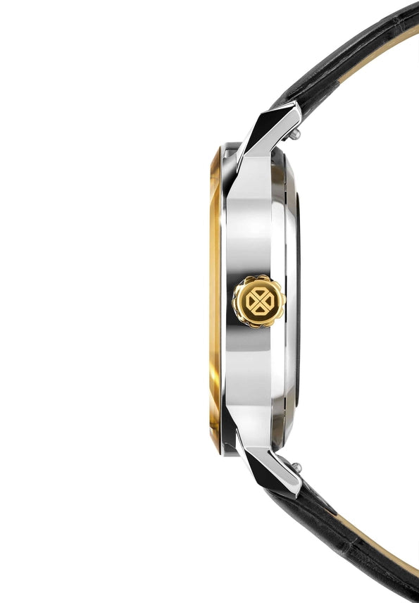 Rakastatko mustavalkoista miesten kelloa? Tämä miesten automaattinen 41 mm:n kello juhlistaa Jowissa-suunnittelutiimin hankkimia käsityötaitoa ja korkealaatuisia materiaaleja. Valkoinen kellotaulu ja kullanväriset yksityiskohdat erottuvat mustasta nahkarannekkeesta. Koneisto on näkyvissä, joten näet rattaat ja jouset toiminnassa.