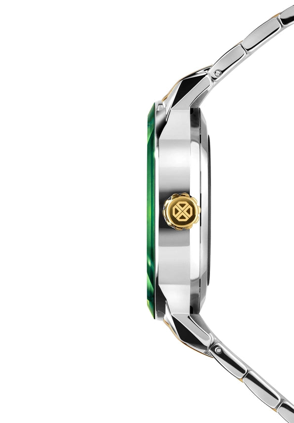 Jowissa juhlistaa väriä ja käsityötaitoa tällä miesten automaattisella 41 mm:n kellolla. Koneisto on näkyvä ja siinä on vihreä kellotaulu, ruostumattomasta teräksestä valmistettu kotelo ja vihreä kehys. Tämä smaragdinvihreä sävy on rohkean kontrastin luonut kaksivärisen ruostumattomasta teräksestä valmistetun rannekorun kanssa. Jos haluat sveitsiläisvalmisteisen miesten kellon edulliseen hintaan, tämä on viisas ostos.